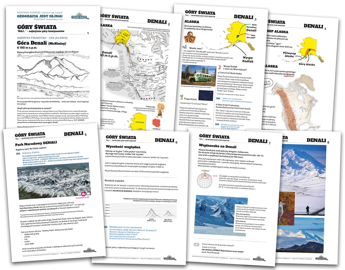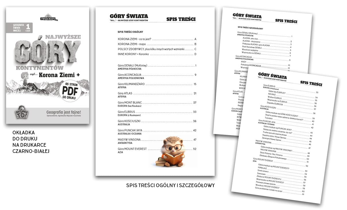 Edukacyjny e-book PDF do samodzielnego wydruku (A4) o Koronie Ziemi / Seven Summits.