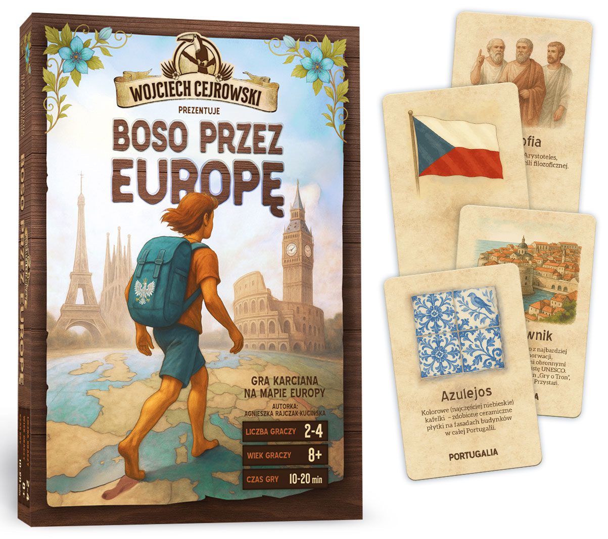„Boso przez Europę” to świetna gra edukacyjna i rodzinna dla dzieci od 8 lat. To szybka gra geograficzna, idealna na lekcje, do szkoły, do nauki państw Europy i jako prezent dla ciekawych świata dzieci.